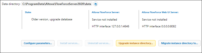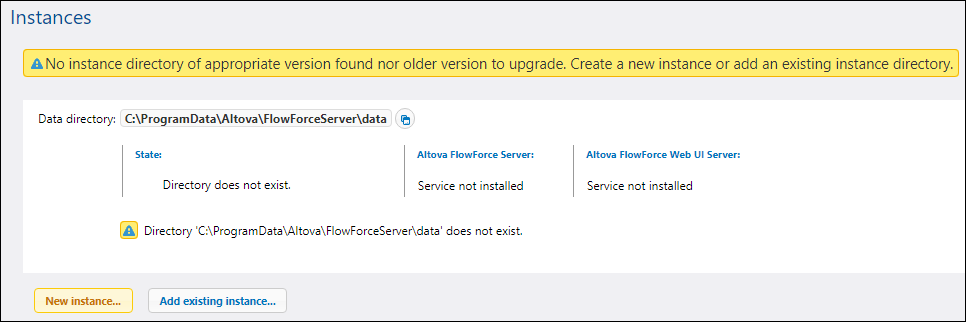2.Select an existing instance-data directory that contains flowforce.db and other FlowForce instance files.